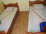 Две двухместные небольшие комнаты на первом этаже. В одной из комнат имеется большой балкон. Из обеих комнат открывается прекрасный вид на море. Совместный санузел на первом этаже. Стоимость проживания: 15(июнь-10) у. е. с человека в сутки.